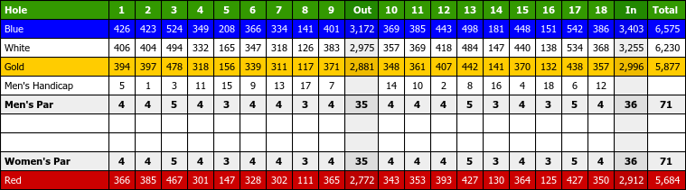 We make every effort to make sure our data for this Golf Club. With world-class conditions and friendly staff you wont find a better golf experience in the area. Is defined by white stakes and boundary fencesOn holes 1 6 9 10 14 16 and 18 white lines on the outside edges of the cart.